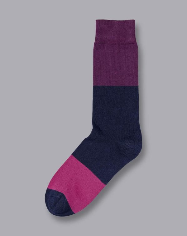 Men Block Stripe Socks Purple | Charles Tyrwhitt Socks