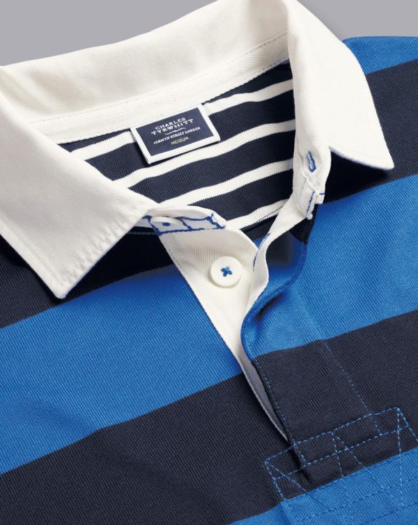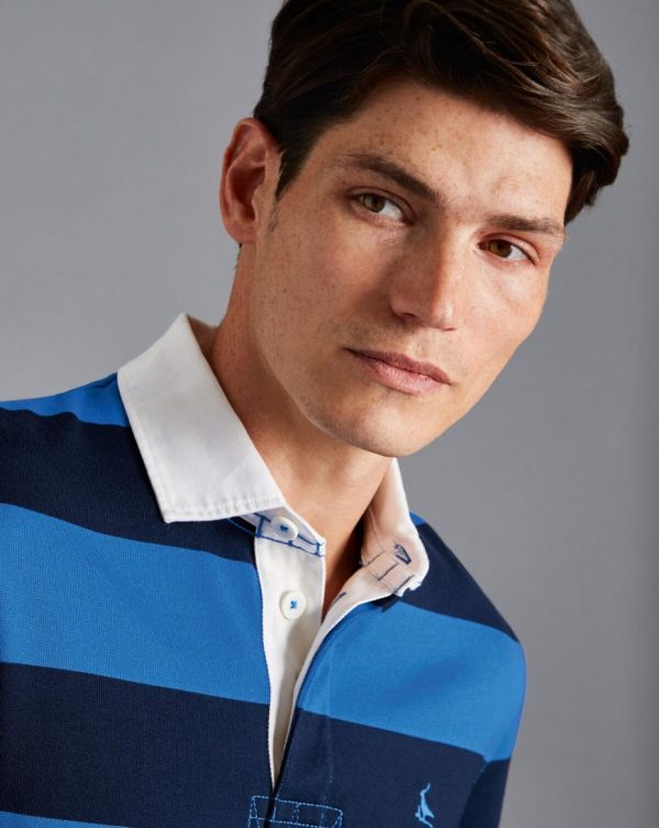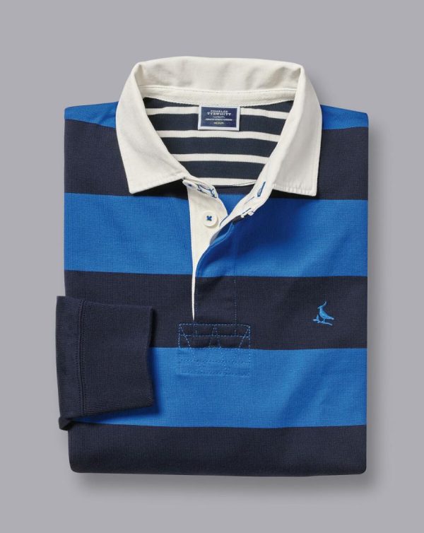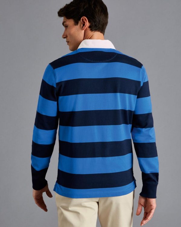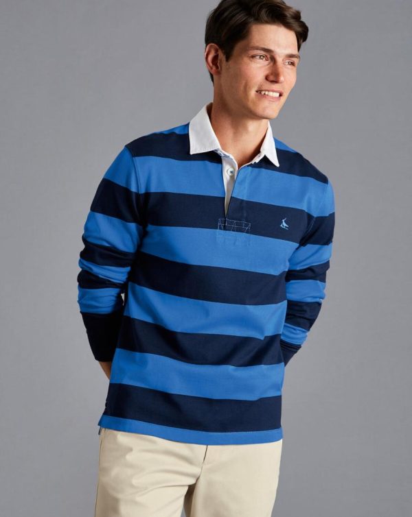 Men Bold Stripe Rugby Shirt Navy And Blue | Charles Tyrwhitt Knitwear