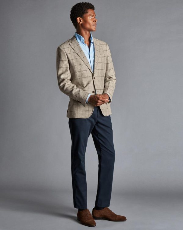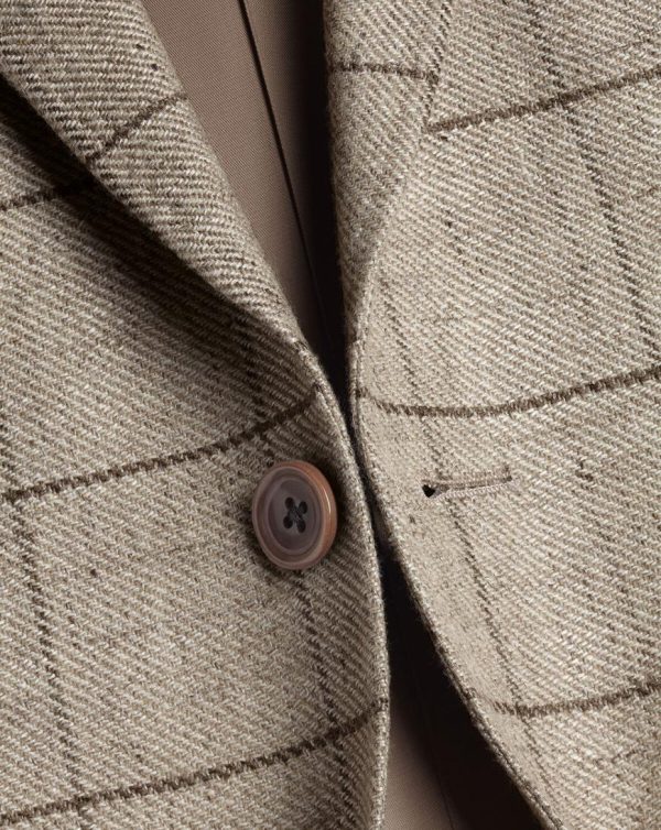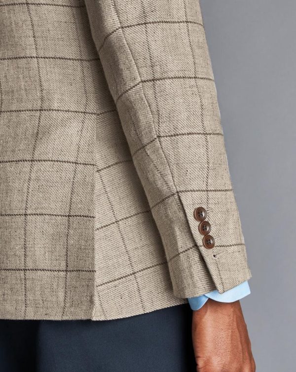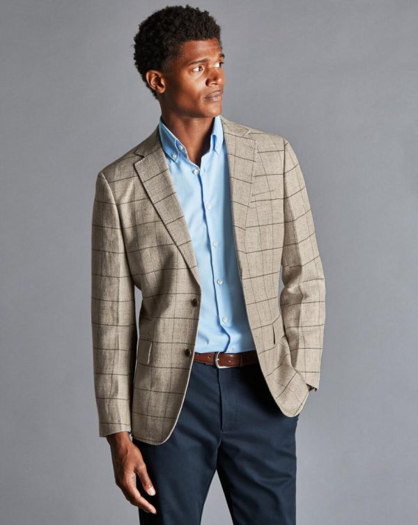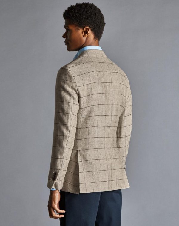 Men British Luxury Linen Wool Windowpane Check Jacket Oatmeal | Charles Tyrwhitt Blazers