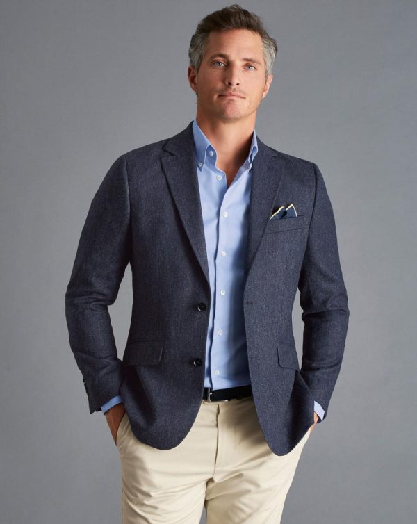 Men British Wool Textured Jacket Navy | Charles Tyrwhitt Blazers