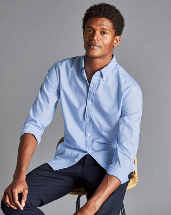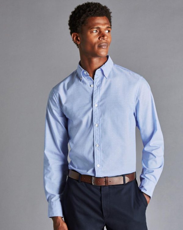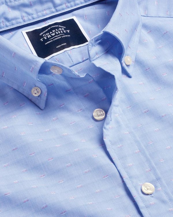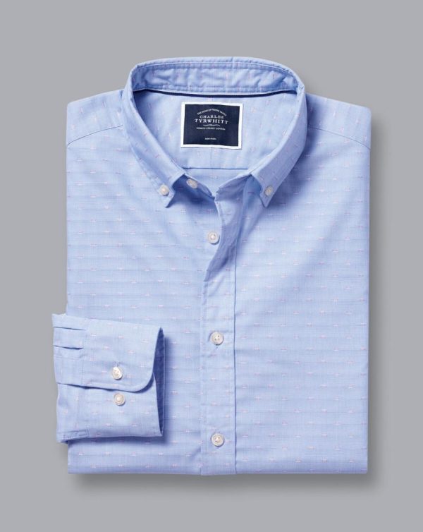 Men Button-Down Collar Non-Iron Stretch Clip Dobby Shirt Cornflower Blue | Charles Tyrwhitt Casual