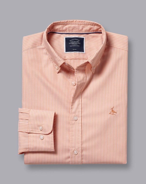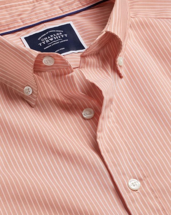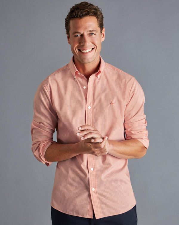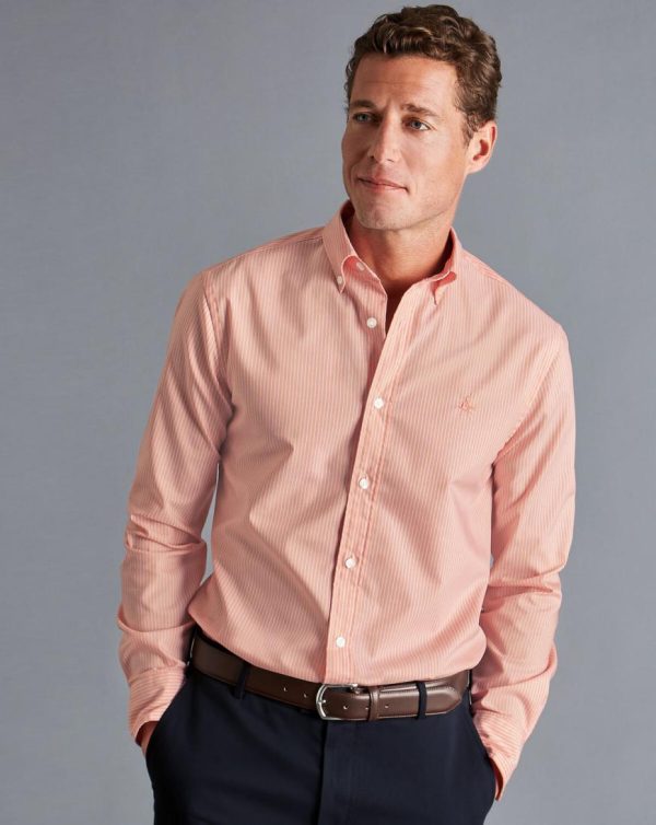 Men Button-Down Collar Non-Iron Stretch Fine Stripe Shirt Orange | Charles Tyrwhitt Casual