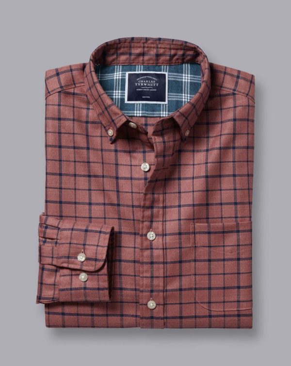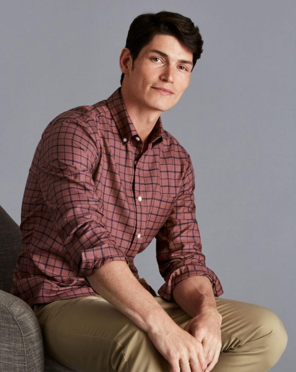 Men Button-Down Collar Non-Iron Twill Check Shirt Dark Pink | Charles Tyrwhitt Casual