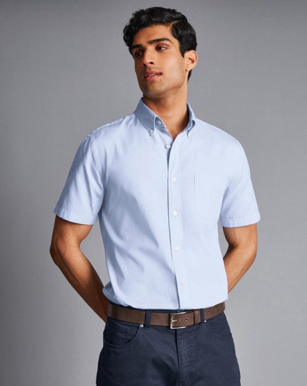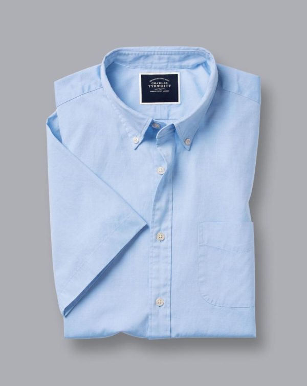 Men Button-Down Collar Washed Oxford Short Sleeve Shirt Sky | Charles Tyrwhitt Casual