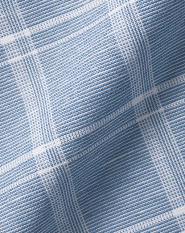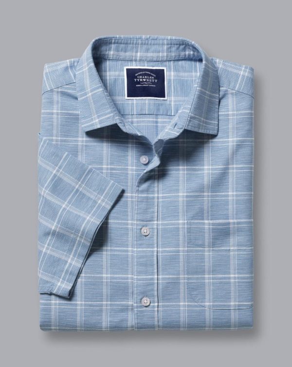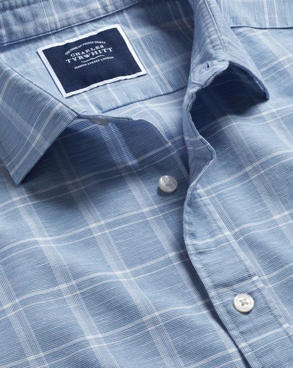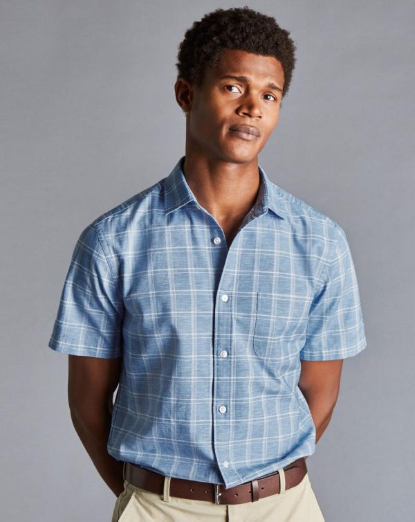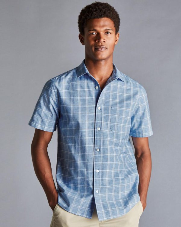 Men Cotton Linen Oxford Check Short Sleeve Shirt Indigo | Charles Tyrwhitt Casual