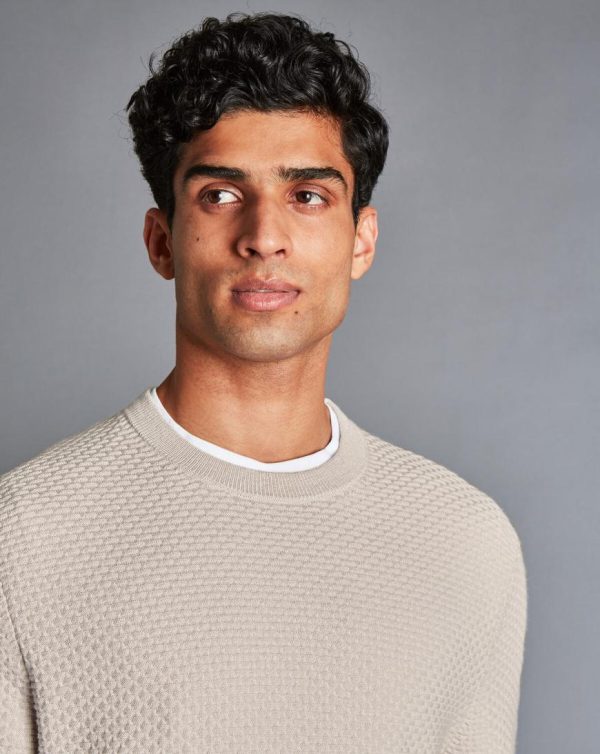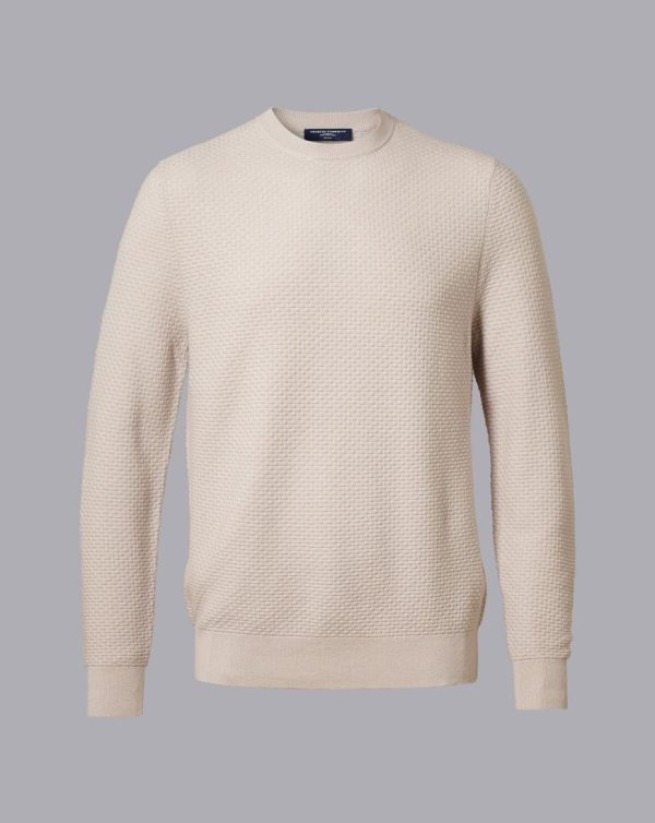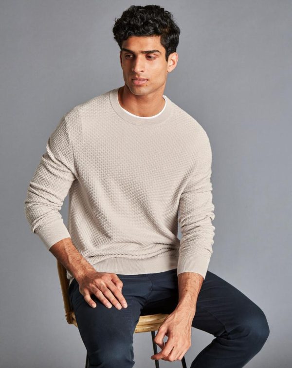 Men Cotton Merino Textured Crew Neck Jumper Chalk | Charles Tyrwhitt Knitwear