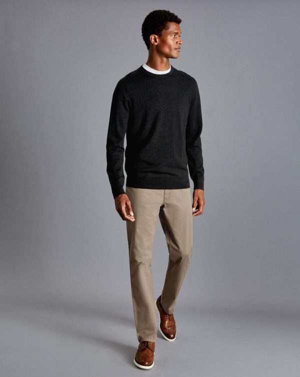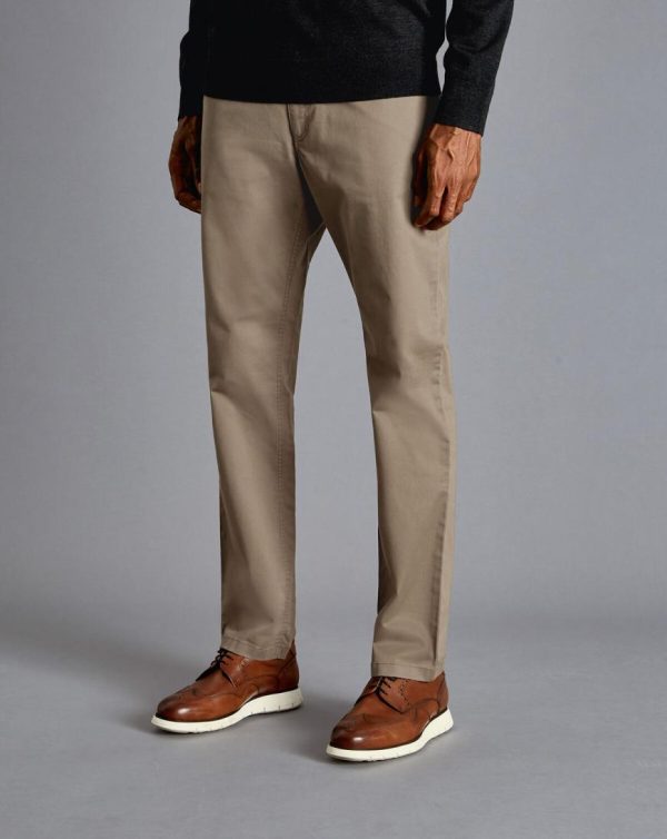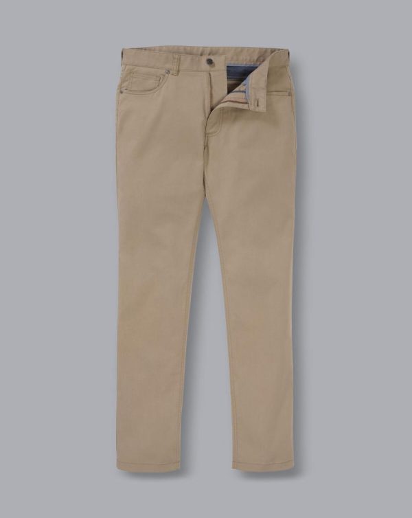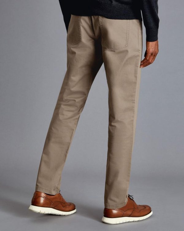 Men Cotton Stretch -Pocket Trousers Mocha | Charles Tyrwhitt Trousers & Shorts