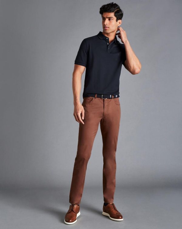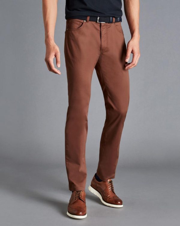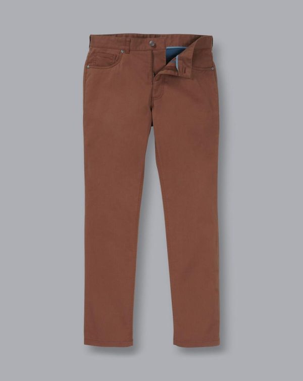 Men Cotton Stretch -Pocket Trousers Rust | Charles Tyrwhitt Trousers & Shorts