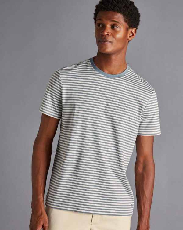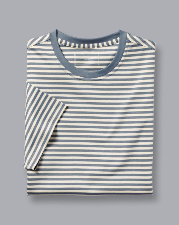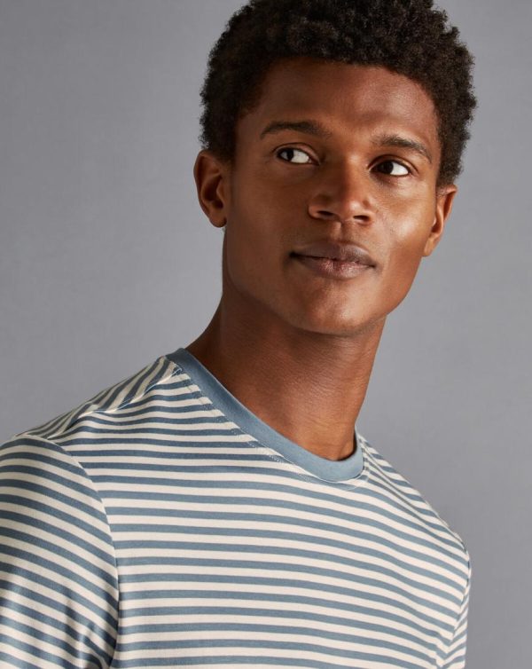 Men Cotton Stripe Tyrwhitt T-Shirt Steel Blue | Charles Tyrwhitt T-Shirts