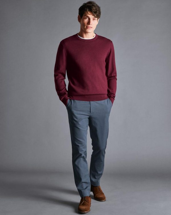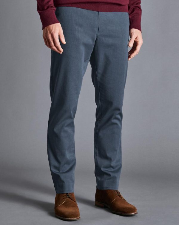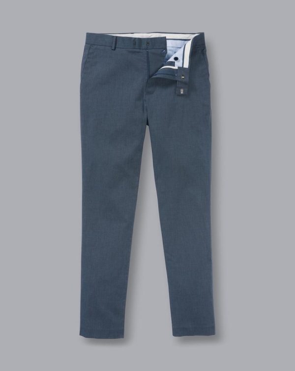 Men Cotton TENCEL™ Stretch Trousers Navy | Charles Tyrwhitt Trousers & Shorts