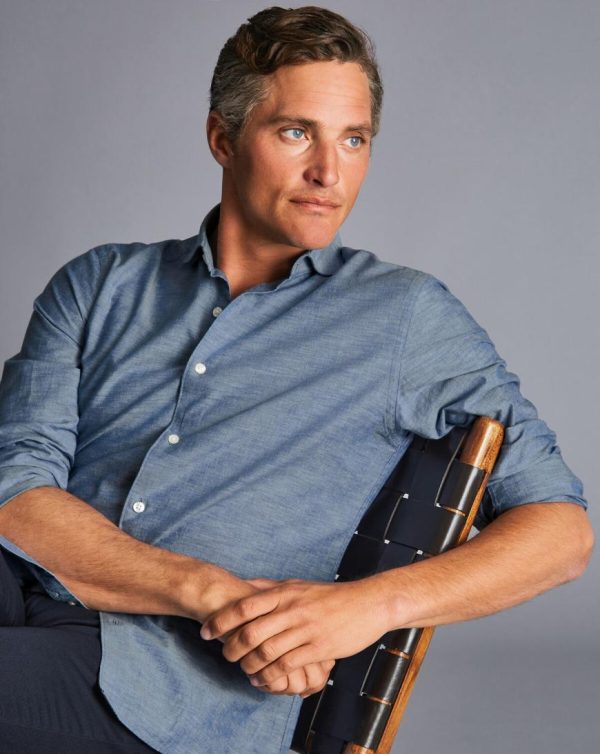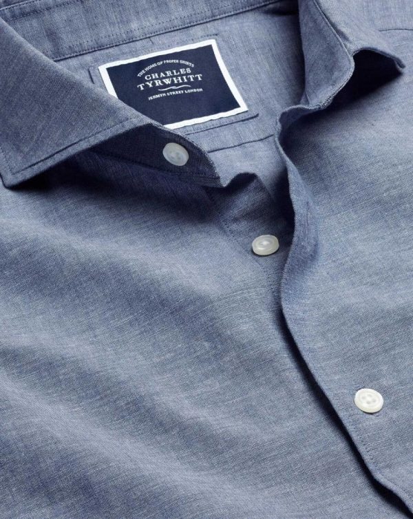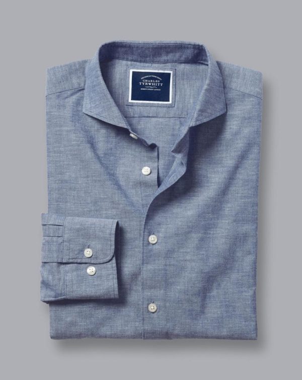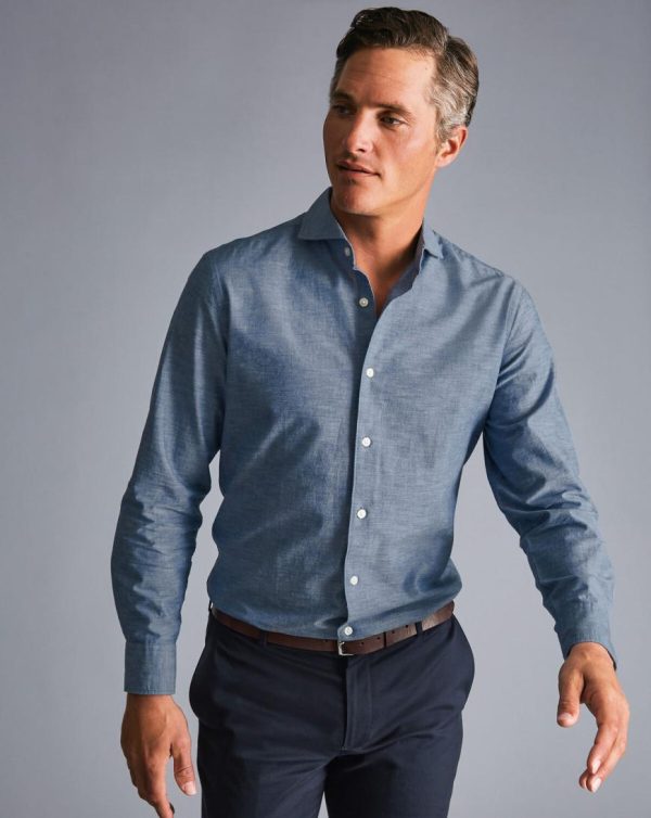 Men Cutaway Collar Chambray Shirt Indigo Blue | Charles Tyrwhitt Casual