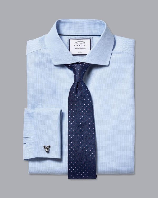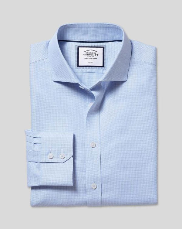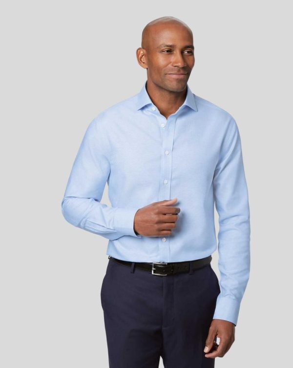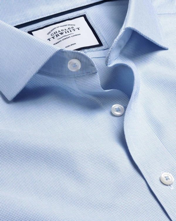 Men Cutaway Collar Non-Iron Ludgate Weave Shirt Sky Blue | Charles Tyrwhitt Smart