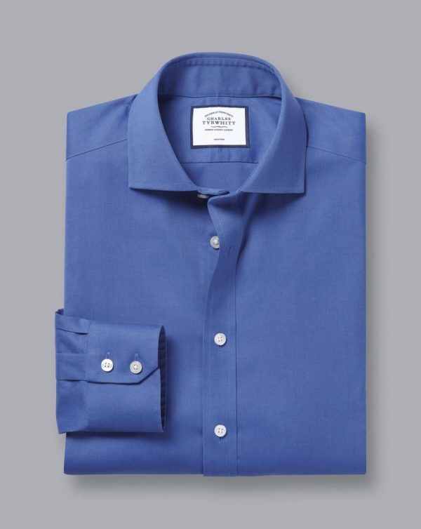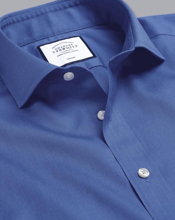 Men Cutaway Collar Non-Iron Pinpoint Oxford Shirt Ocean Blue | Charles Tyrwhitt Smart