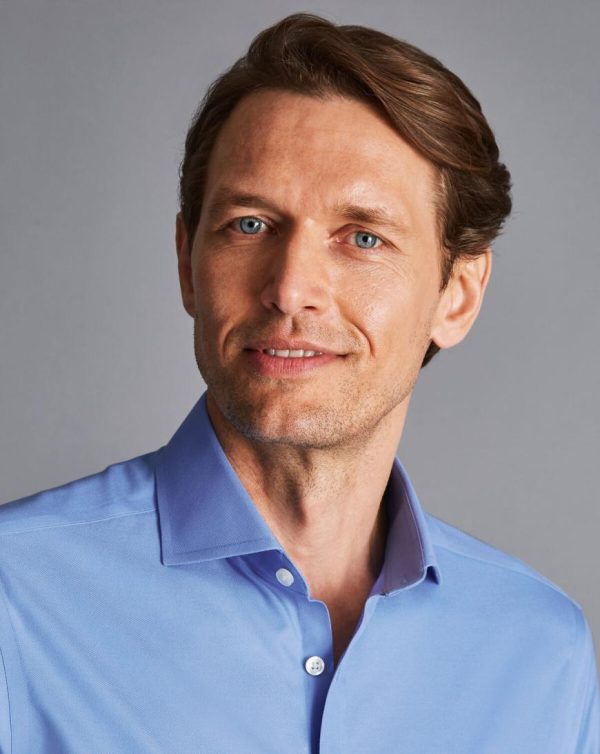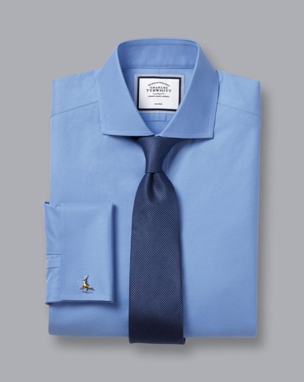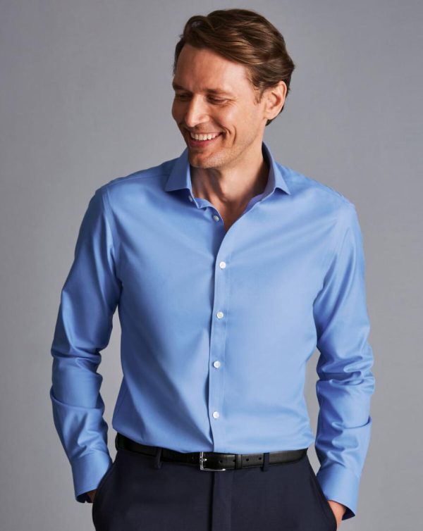 Men Cutaway Collar Non-Iron Twill Shirt Cornflower Blue | Charles Tyrwhitt Smart