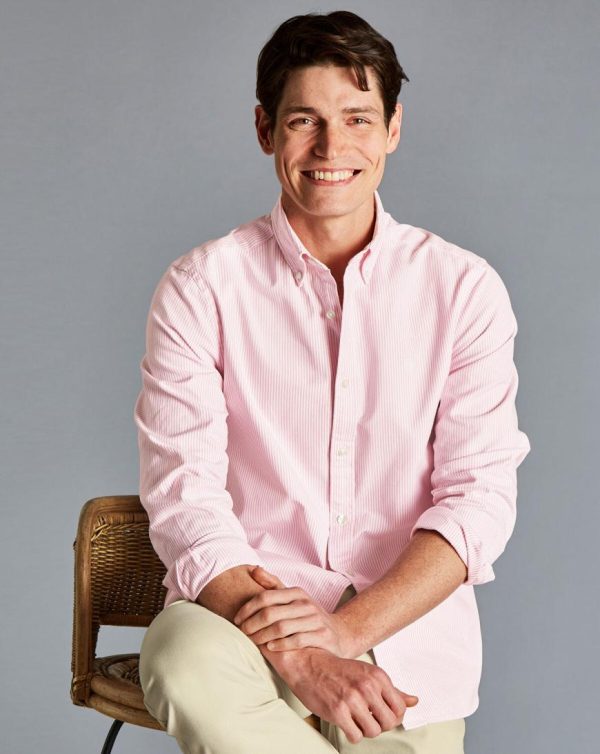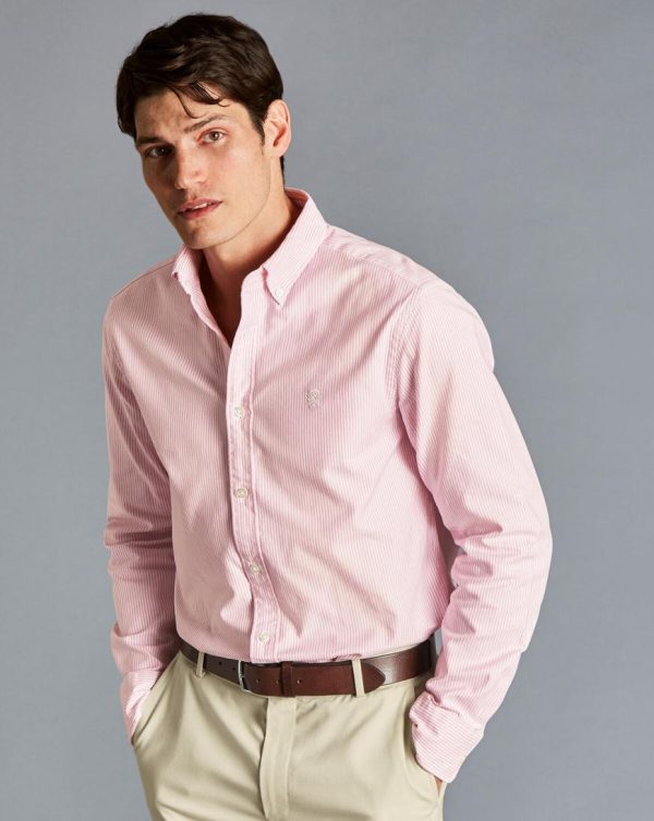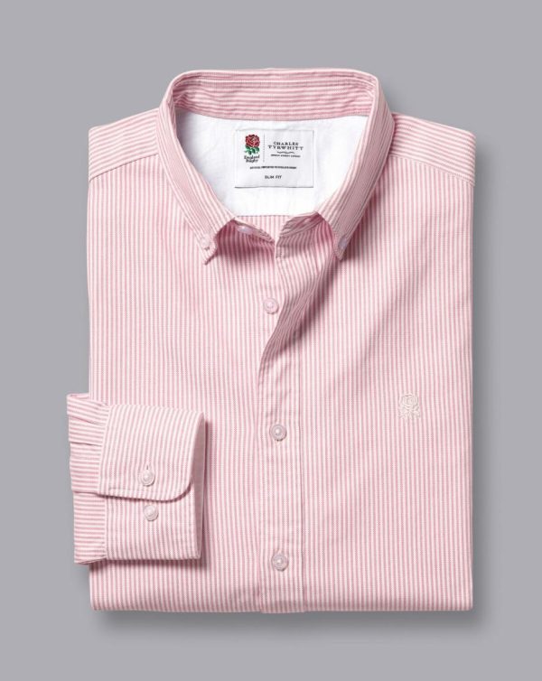 Men England Rugby Button-Down Collar Washed Oxford Bengal Stripe Shirt Pink | Charles Tyrwhitt Casual