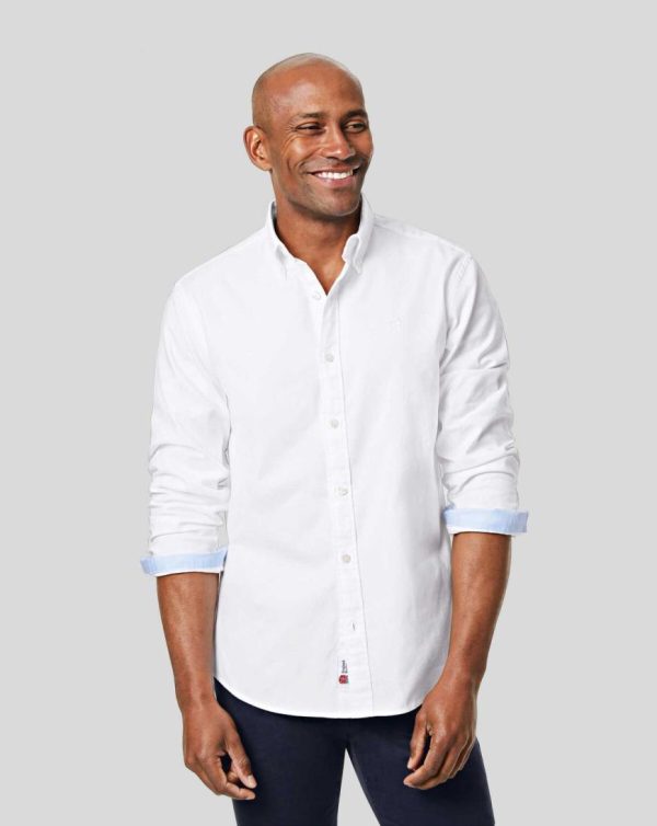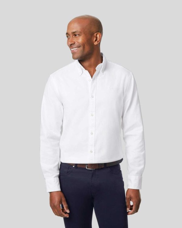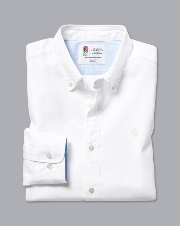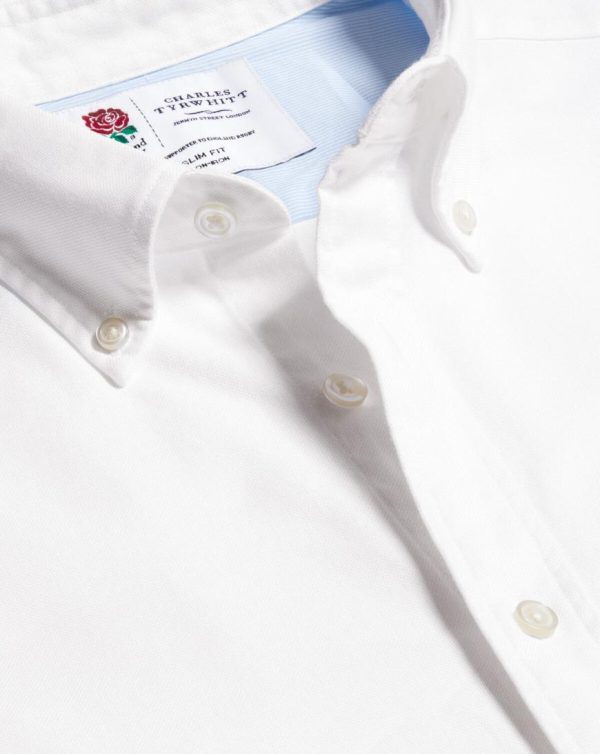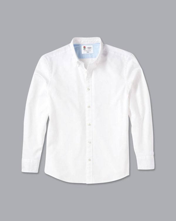 Men England Rugby Button-Down Collar Washed Oxford Shirt White | Charles Tyrwhitt Casual