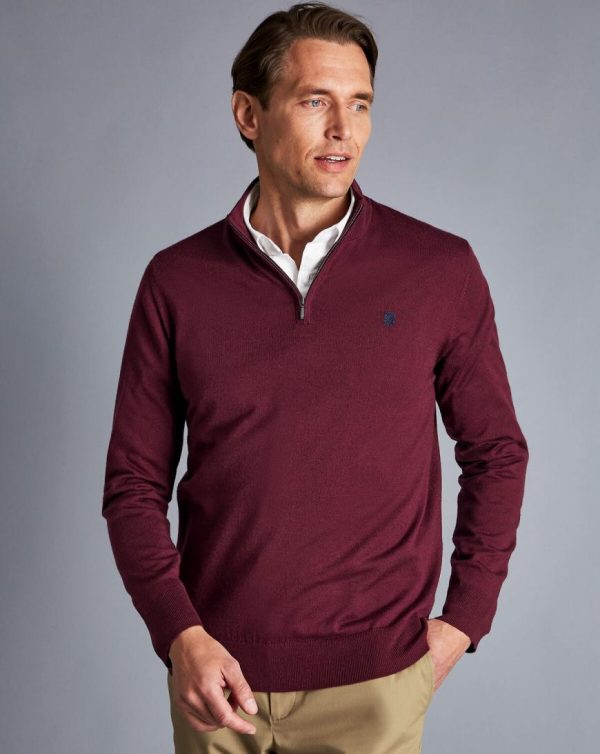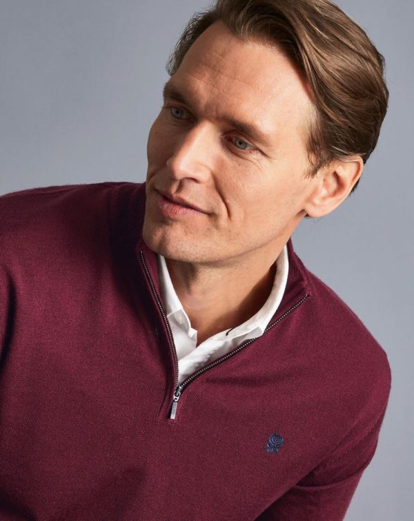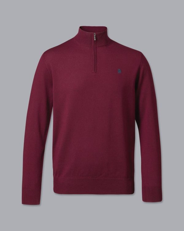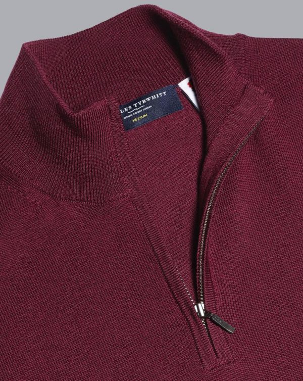 Men England Rugby Merino Zip Neck Jumper Burgundy | Charles Tyrwhitt Knitwear