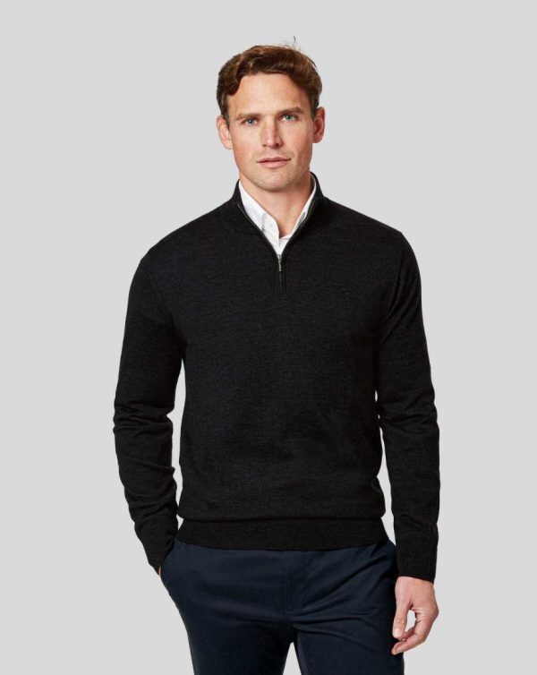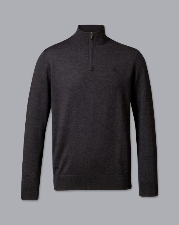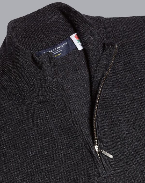 Men England Rugby Merino Zip Neck Jumper Dark Charcoal Grey | Charles Tyrwhitt Knitwear