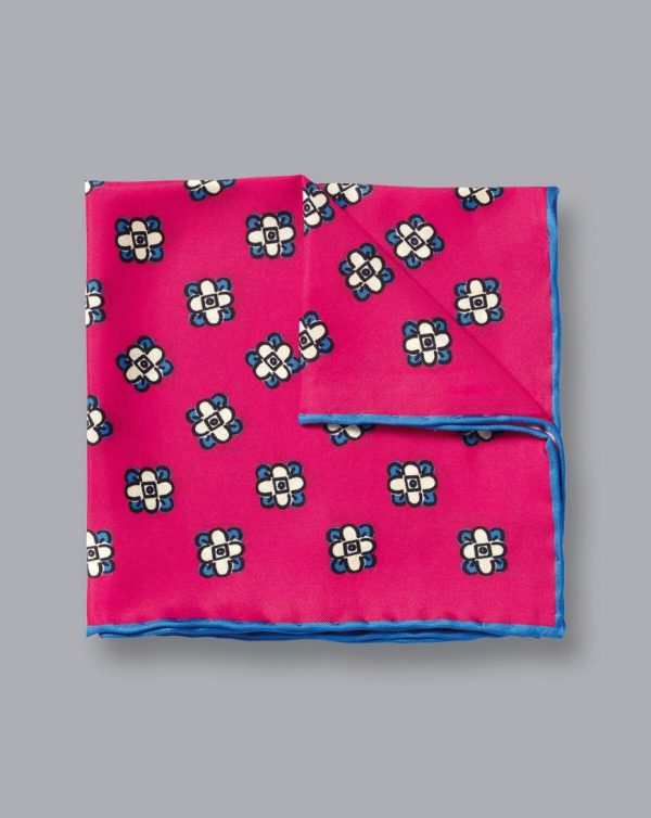 Men Floral Geometic Print Pocket Square Bright Pink/Blue | Charles Tyrwhitt Pocket Squares