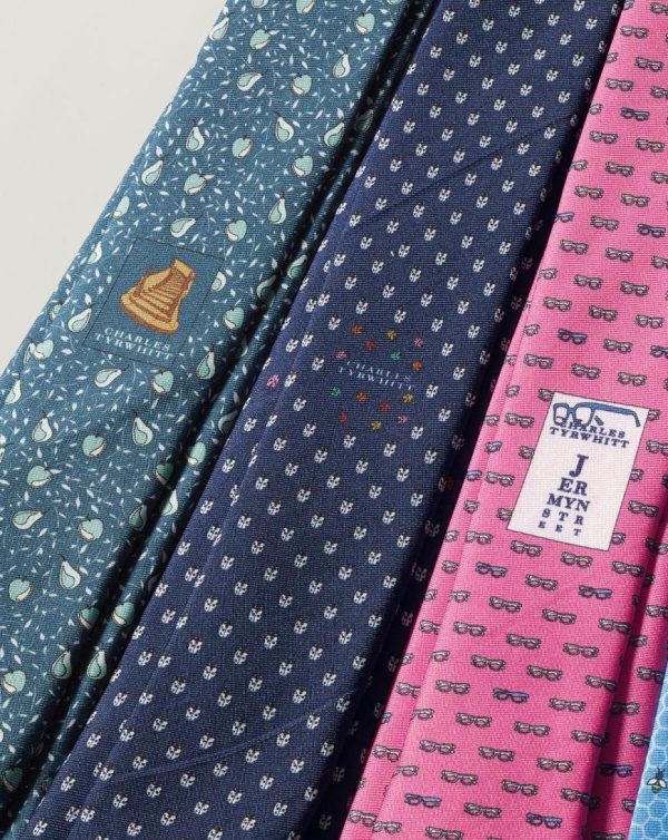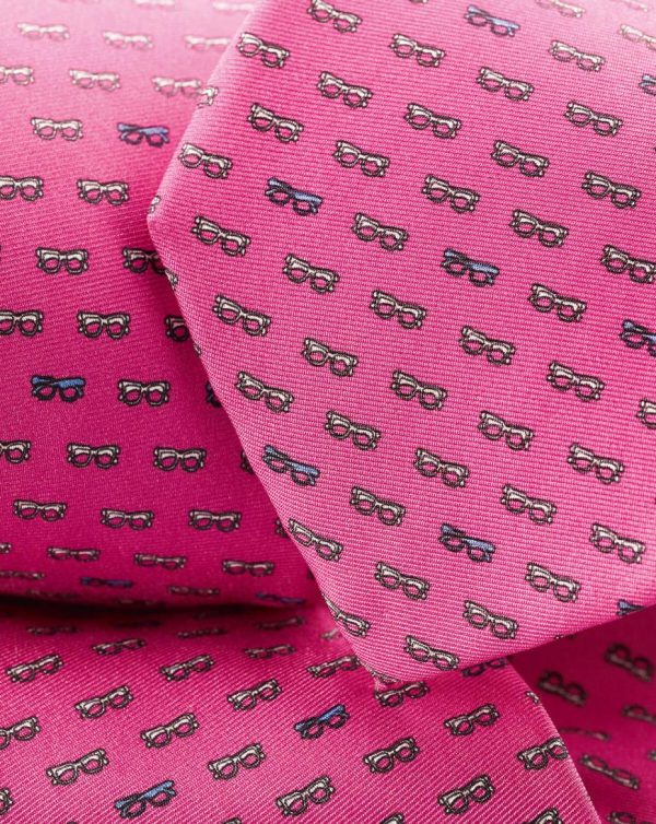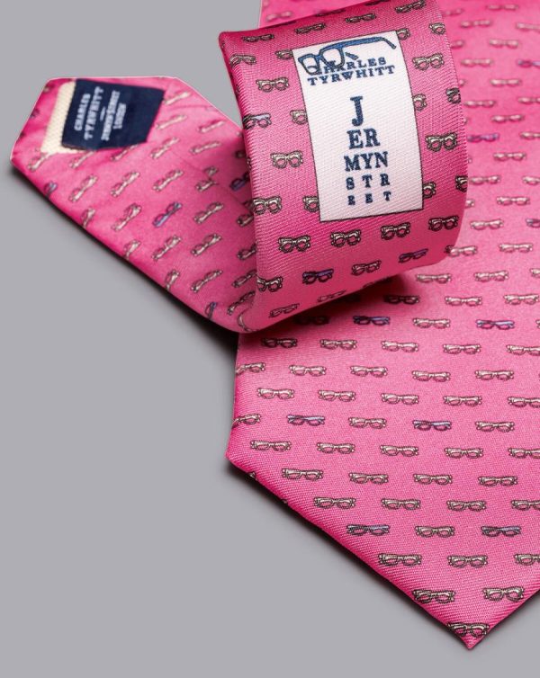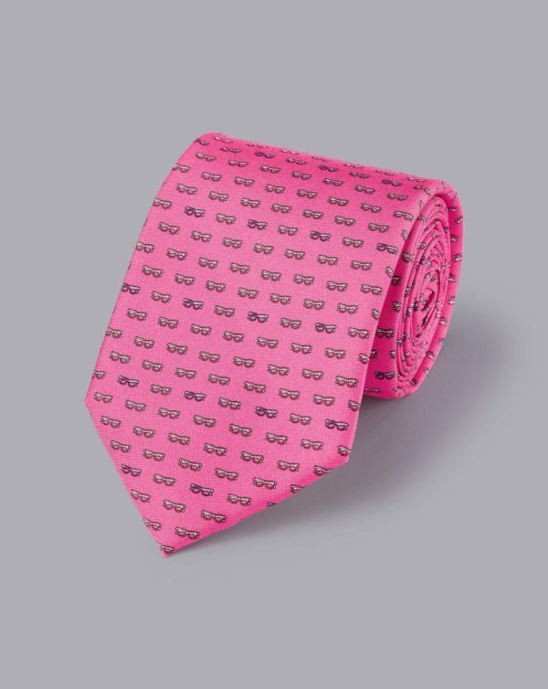 Men Glasses Print Silk Tie Bright Pink | Charles Tyrwhitt Ties
