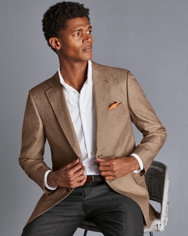 Men Linen Cotton Jacket Limestone | Charles Tyrwhitt Blazers