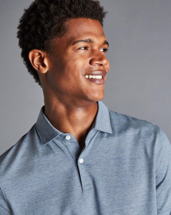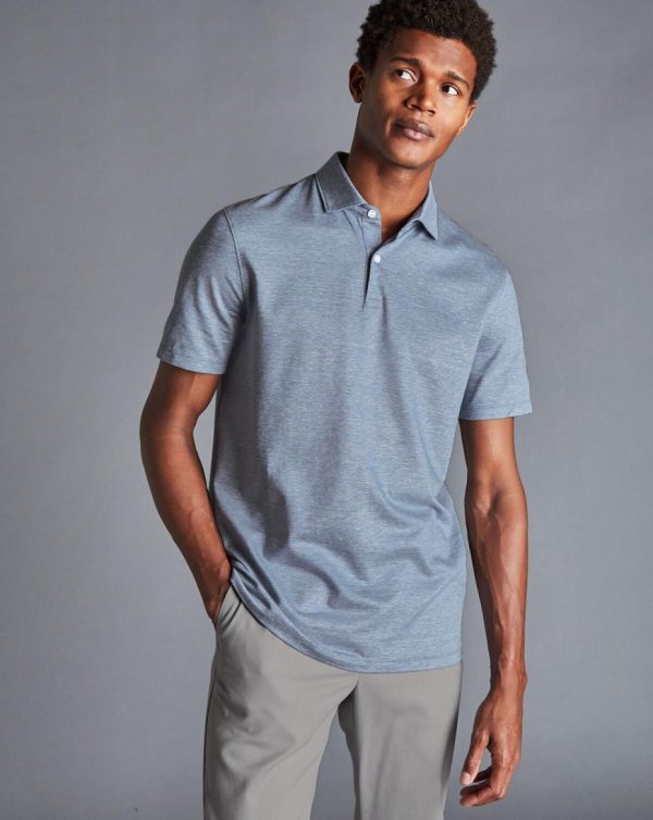 Men Linen Cotton Polo Navy | Charles Tyrwhitt Polos