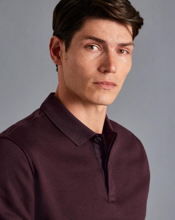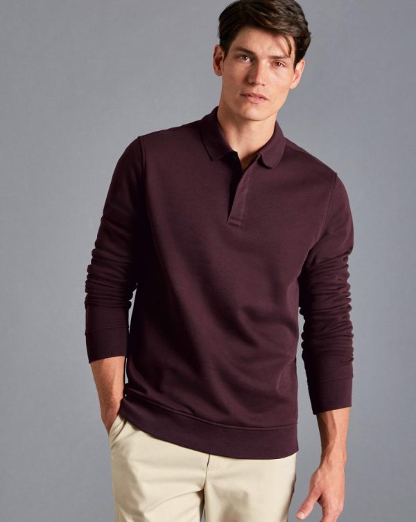 Men Long Sleeve Polo Sweatshirt Wine | Charles Tyrwhitt Knitwear
