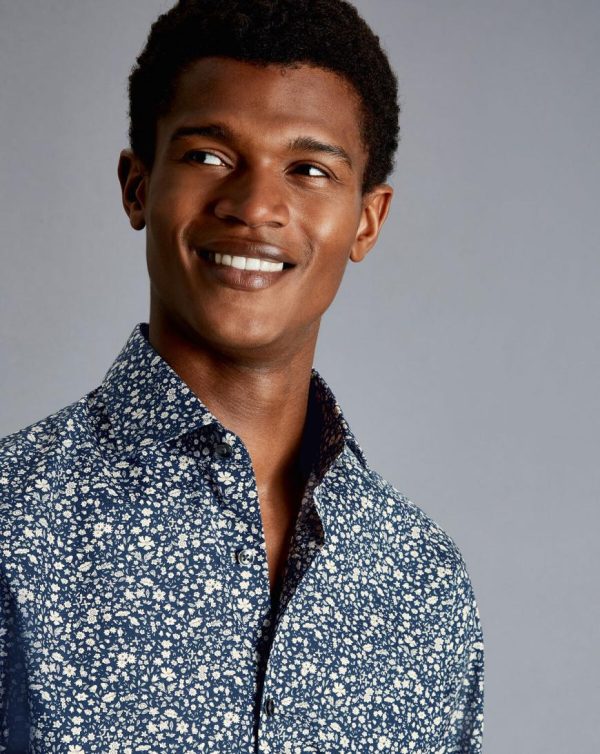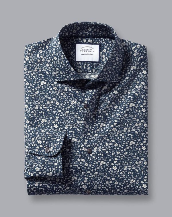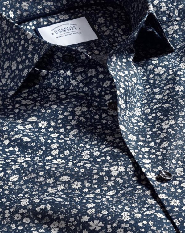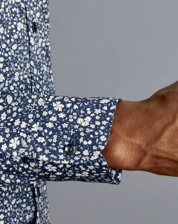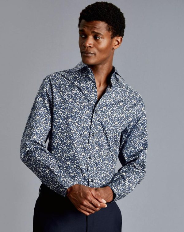 Men Made With Liberty Fabric Semi-Cutaway Collar Shirt Navy | Charles Tyrwhitt Smart Casual