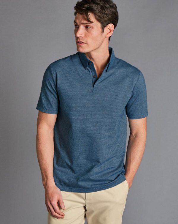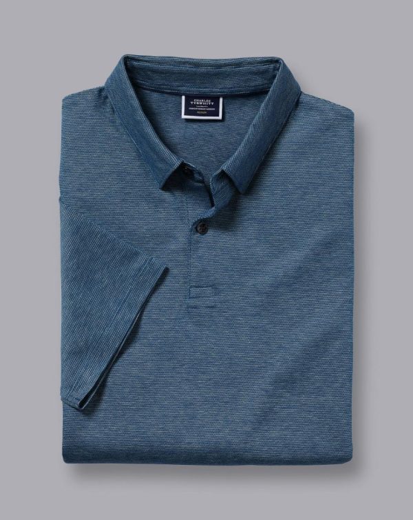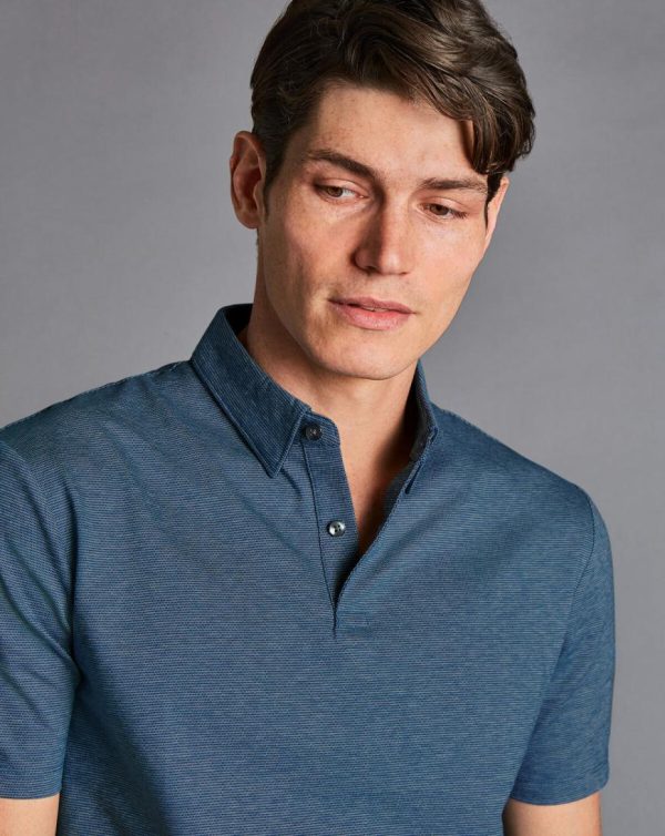 Men Mercerised Cotton Jacquard Polo Ink Blue | Charles Tyrwhitt Polos