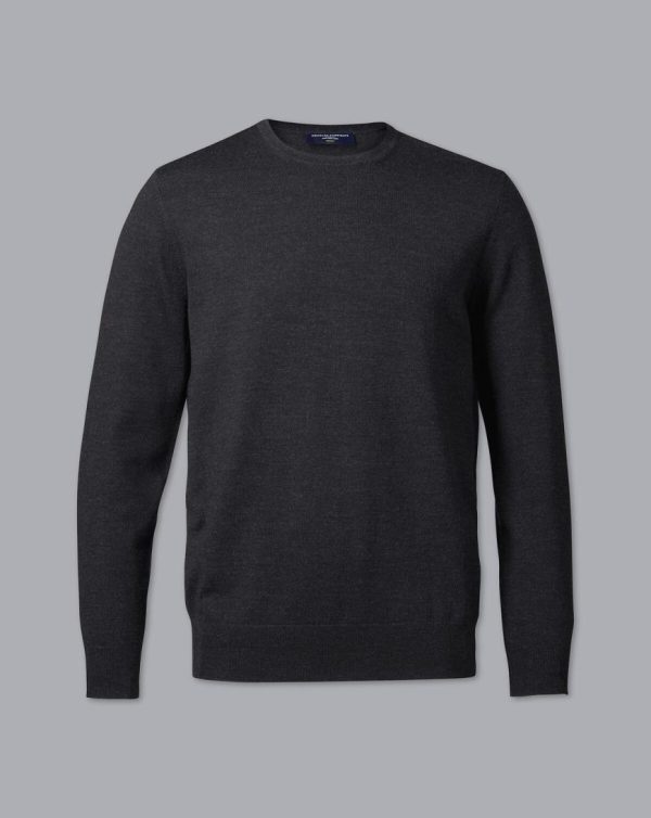 Men Merino Crew Neck Jumper Charcoal | Charles Tyrwhitt Knitwear