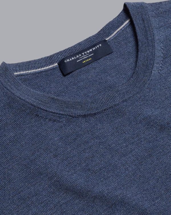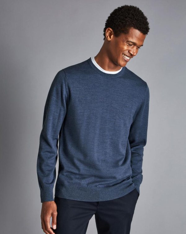 Men Merino Crew Neck Jumper Indigo | Charles Tyrwhitt Knitwear