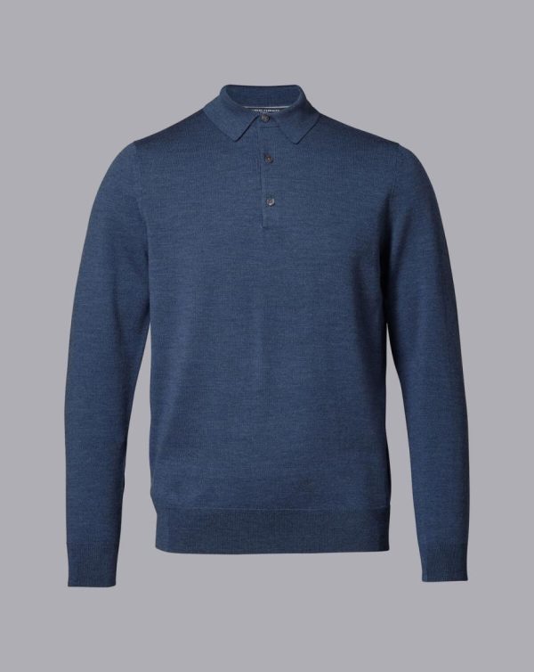 Men Merino Polo Jumper Indigo | Charles Tyrwhitt Knitwear
