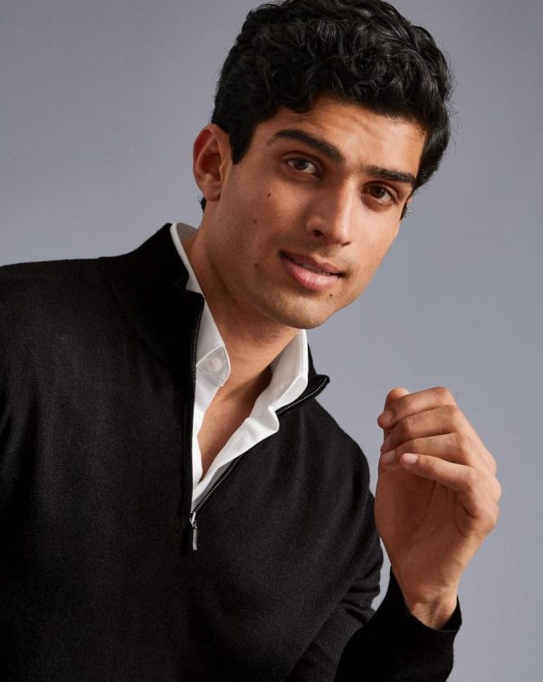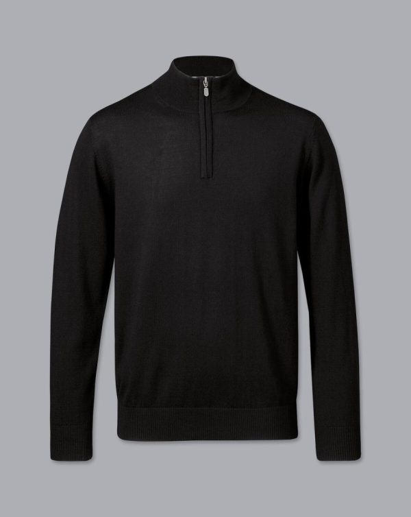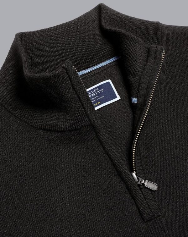 Men Merino Zip Neck Jumper Black | Charles Tyrwhitt Knitwear