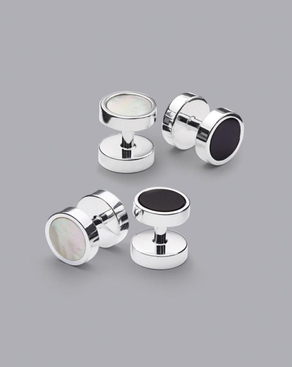 Men Mother Of Pearl And Onyx Evening Studs Silver | Charles Tyrwhitt Cufflinks & Tie Bars