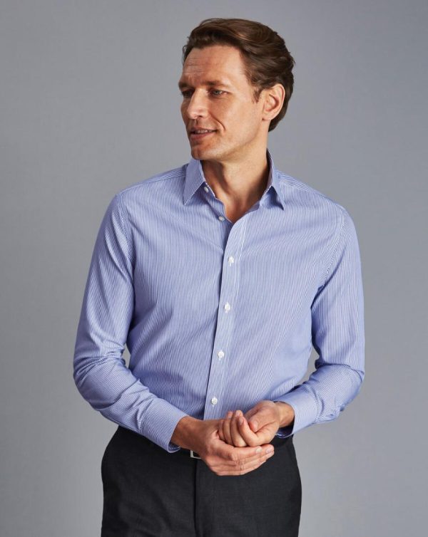 Men Non-Iron Bengal Stripe Shirt Royal | Charles Tyrwhitt Smart