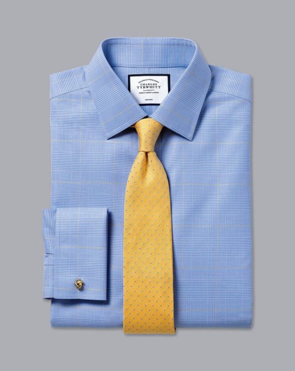 Men Non-Iron Prince Of Wales Check Shirt Ocean Blue | Charles Tyrwhitt Smart