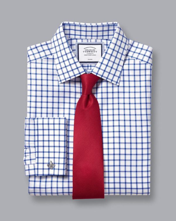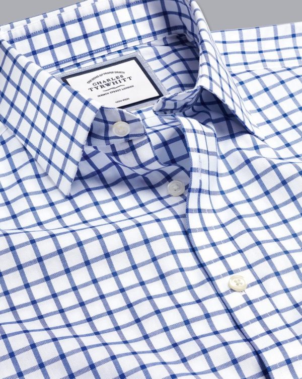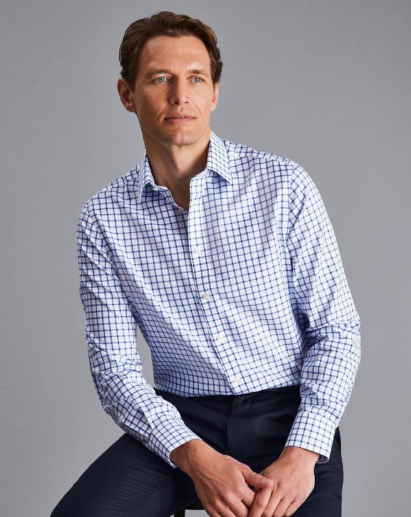 Men Non-Iron Twill Grid Check Shirt Cobalt Blue | Charles Tyrwhitt Smart