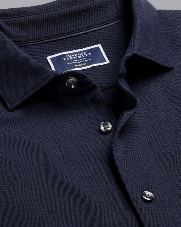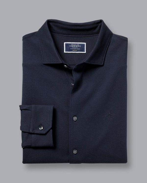 Men Pique Jersey Shirt Navy | Charles Tyrwhitt Casual