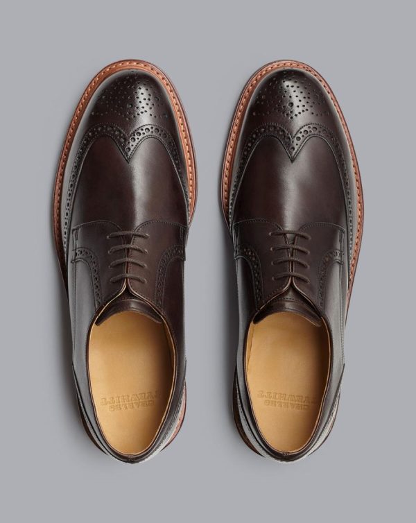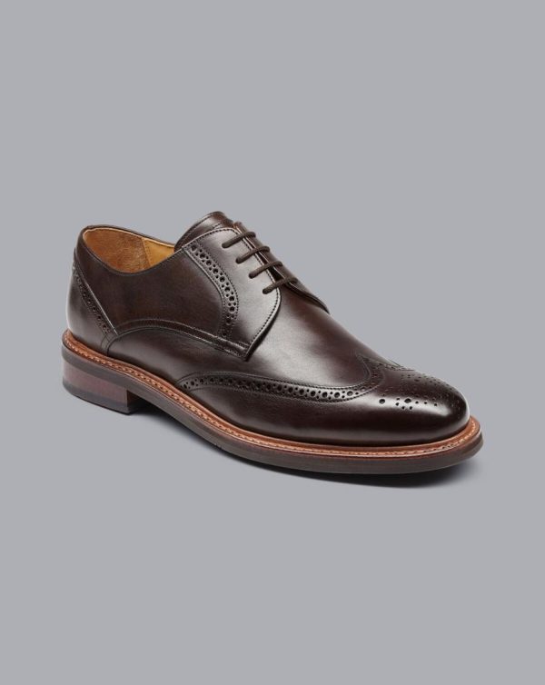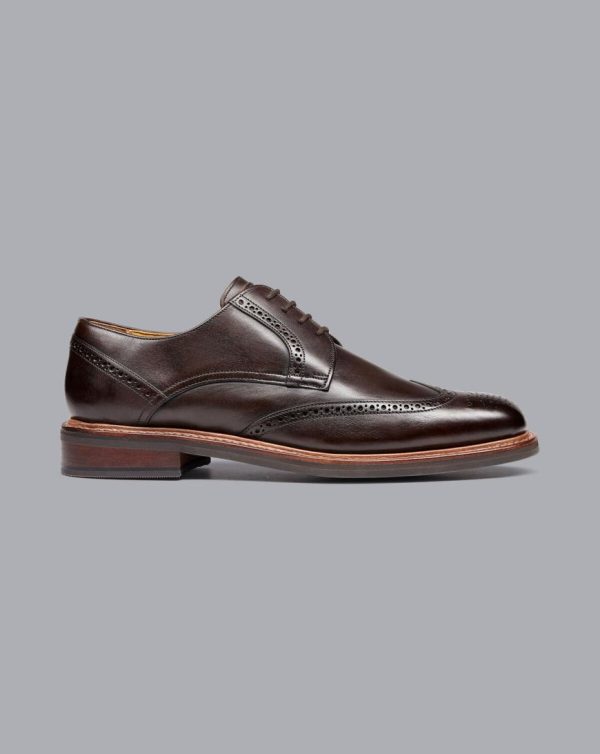 Men Rubber Sole Leather Derby Brogue Shoes Dark Chocolate | Charles Tyrwhitt Lace-Up Shoes