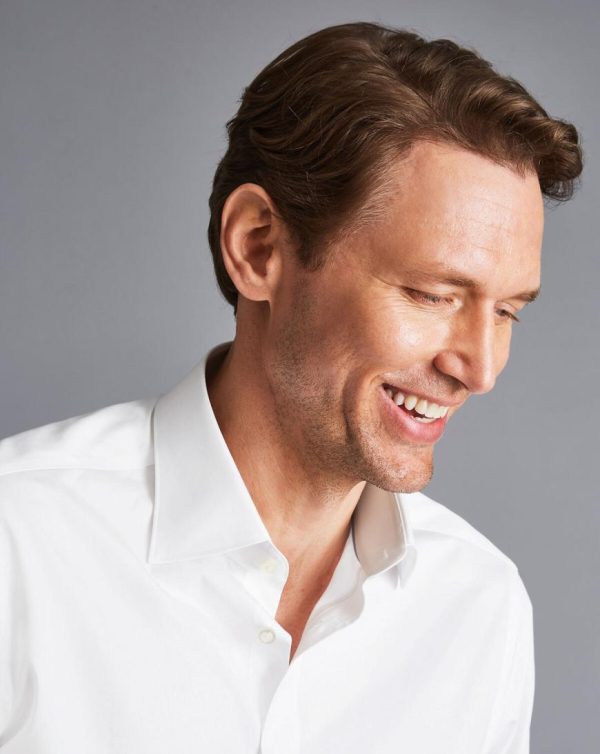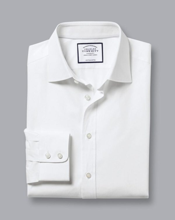 Men Semi-Cutaway Collar Egyptian Cotton Poplin Shirt White | Charles Tyrwhitt Smart