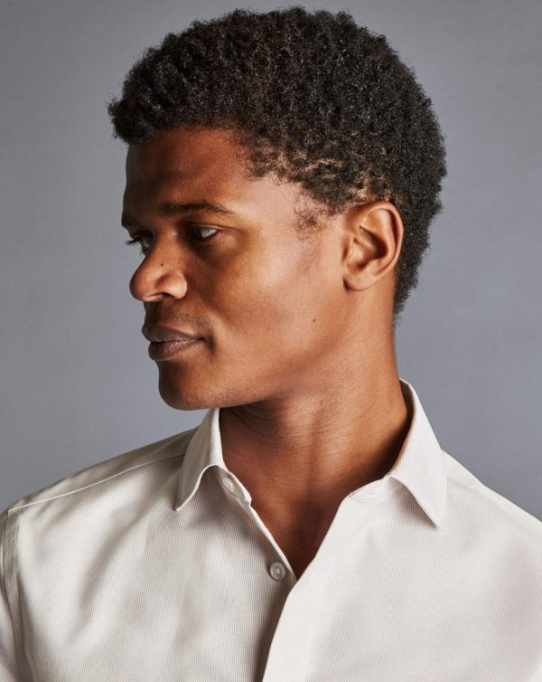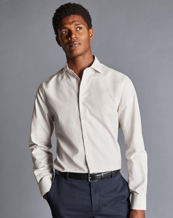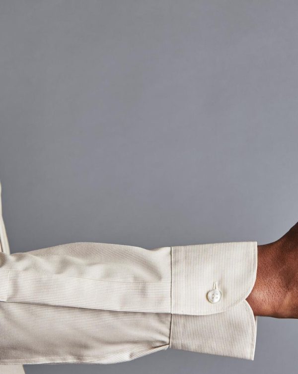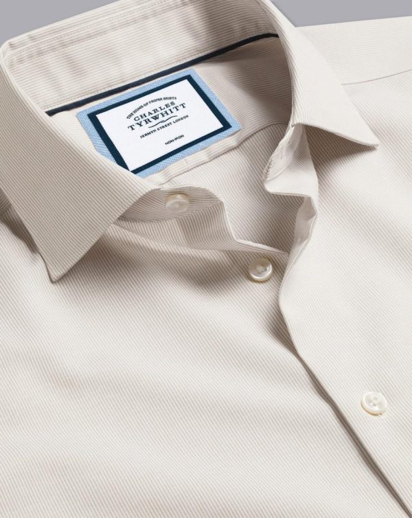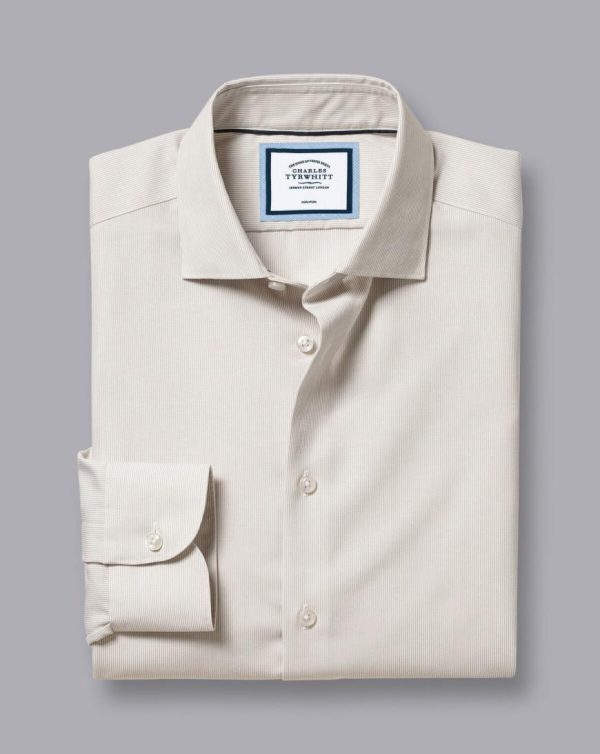 Men Semi-Cutaway Collar Non-Iron Cotton Linen Stripe Shirt Stone | Charles Tyrwhitt Smart Casual