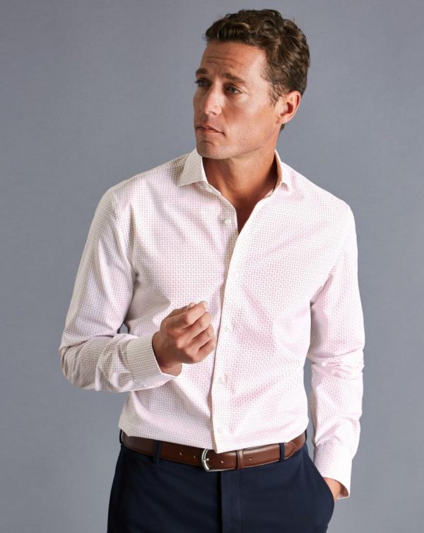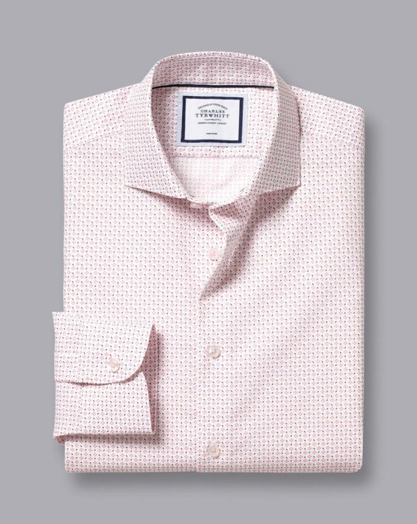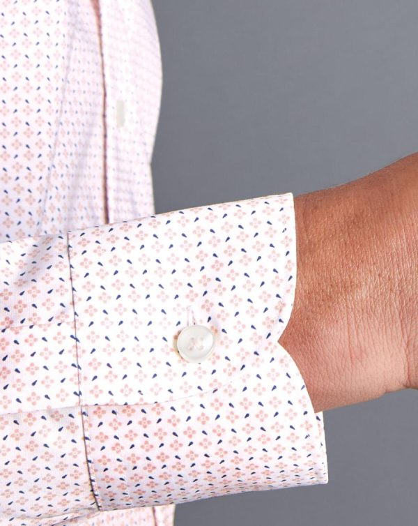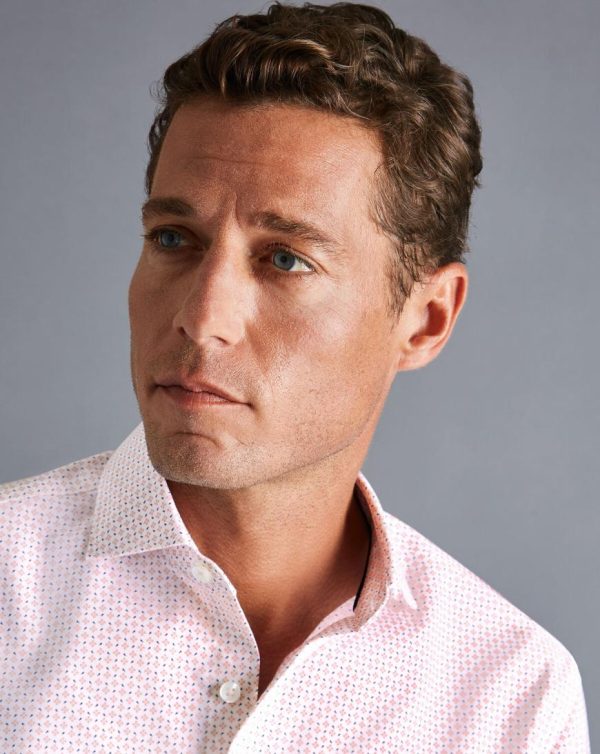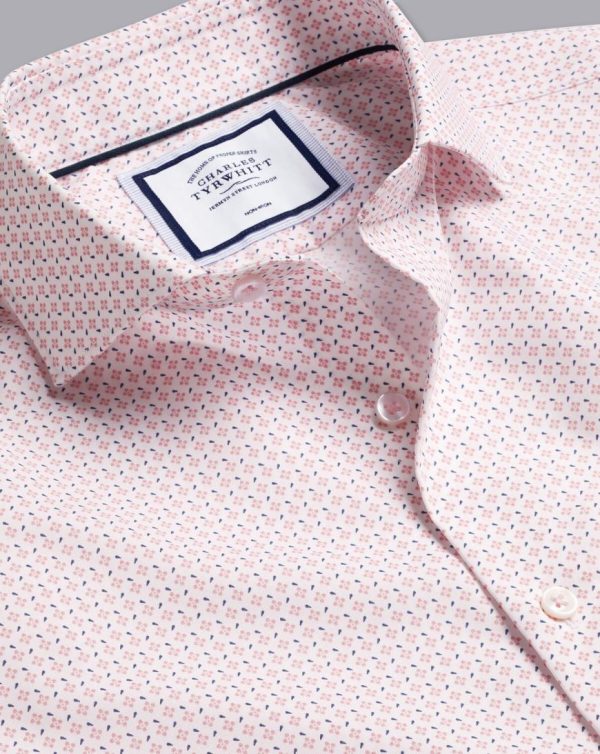 Men Semi-Cutaway Collar Non-Iron Petal Print Shirt Salmon Pink | Charles Tyrwhitt Smart Casual