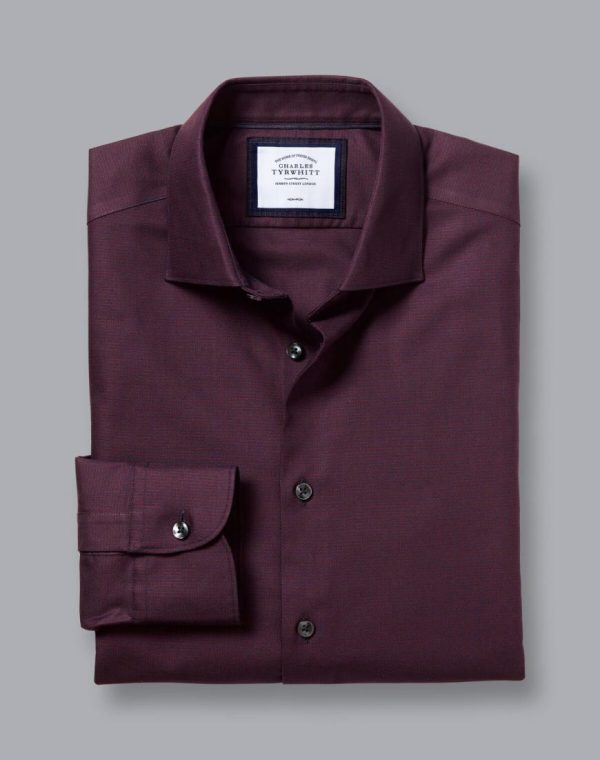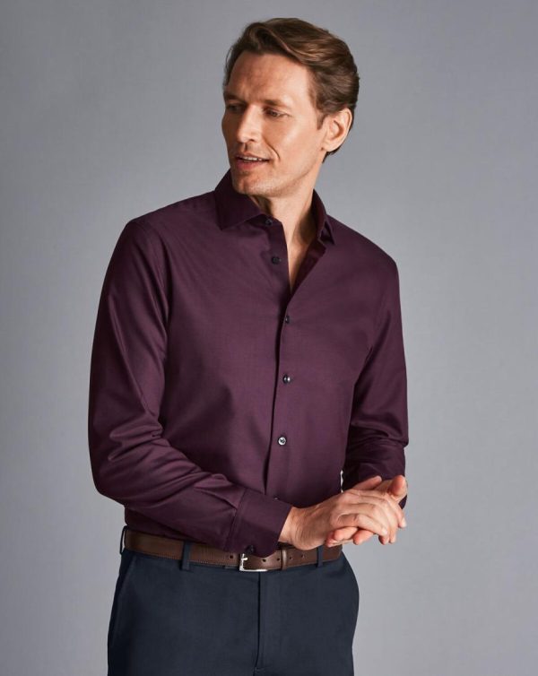 Men Semi-Cutaway Collar Non-Iron Stretch Texture Shirt Navy/Red | Charles Tyrwhitt Smart Casual