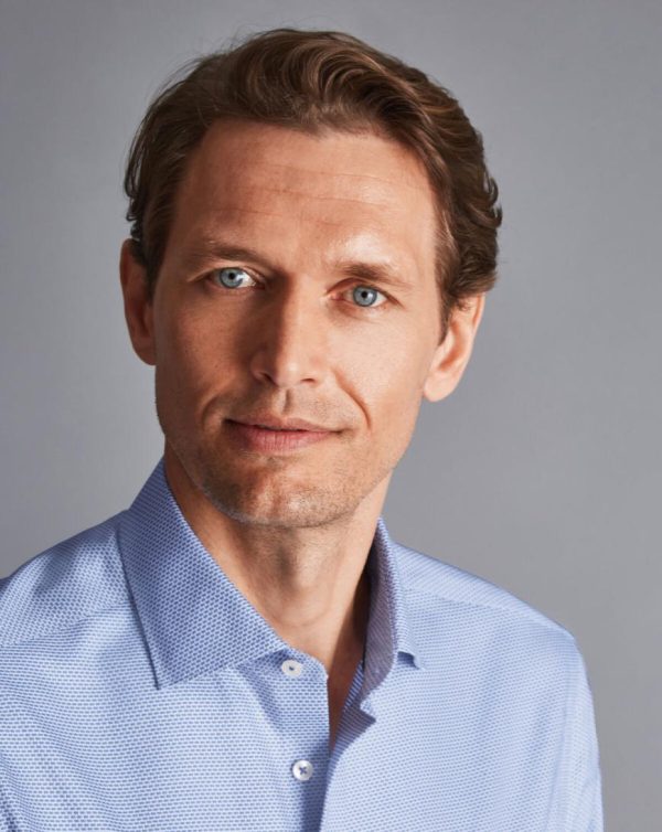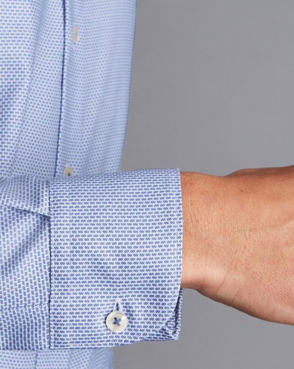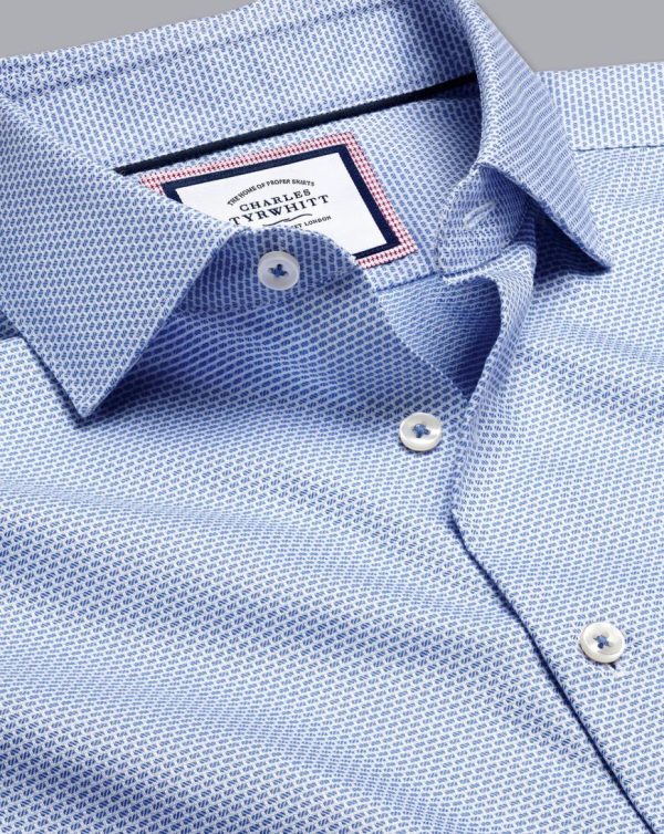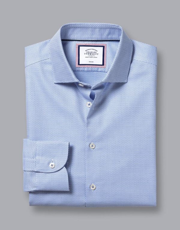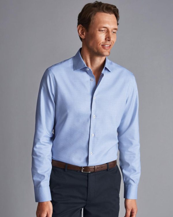 Men Semi-Cutaway Collar Non-Iron Stretch Texture Shirt Sky | Charles Tyrwhitt Smart Casual