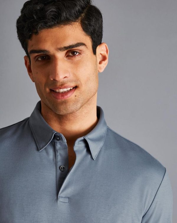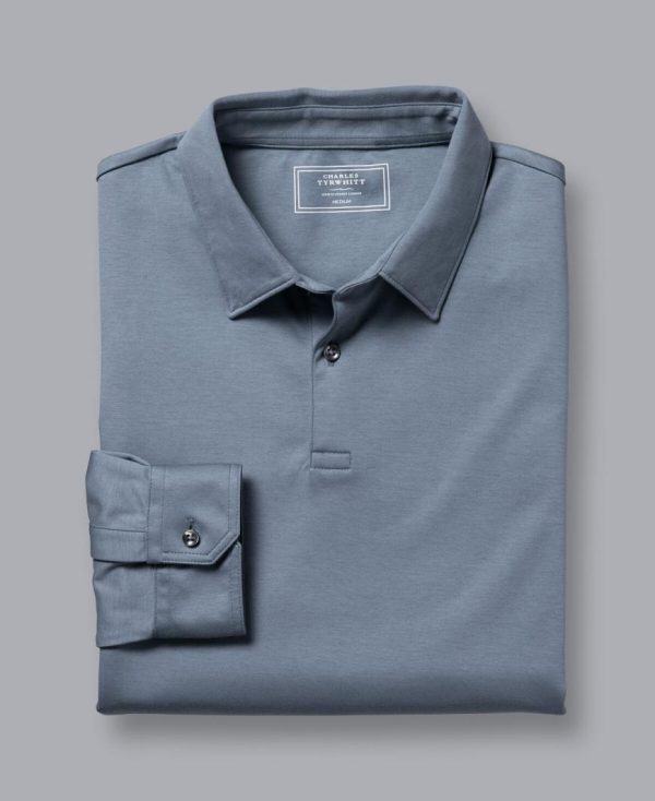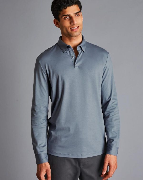 Men Smart Long Sleeve Jersey Polo Steel Blue | Charles Tyrwhitt Loungewear & Pyjamas