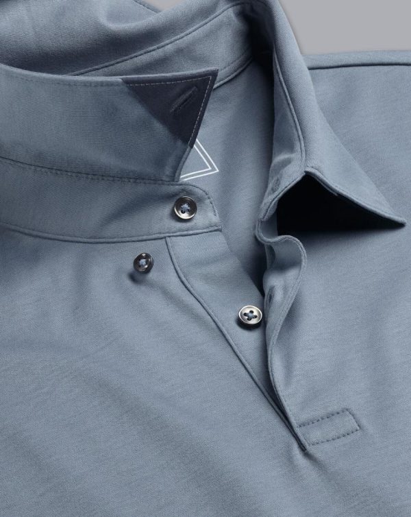 Men Smart Long Sleeve Jersey Polo Steel Blue | Charles Tyrwhitt Polos