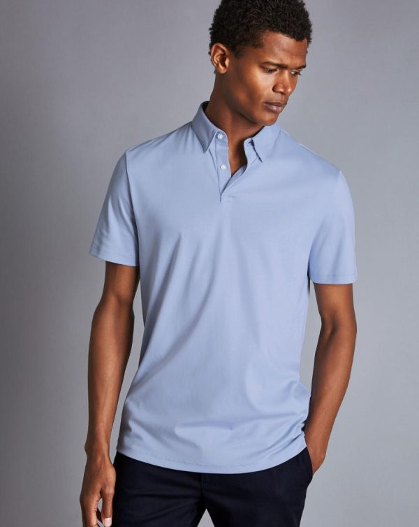 Men Smart Short Sleeve Jersey Polo Sky | Charles Tyrwhitt Loungewear & Pyjamas