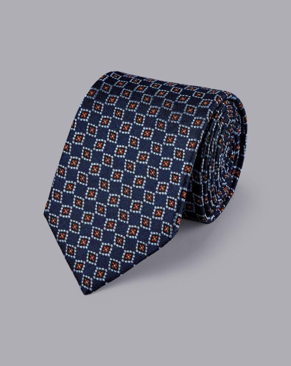 Men Stain Resistant Floral Silk Tie Indigo | Charles Tyrwhitt Ties