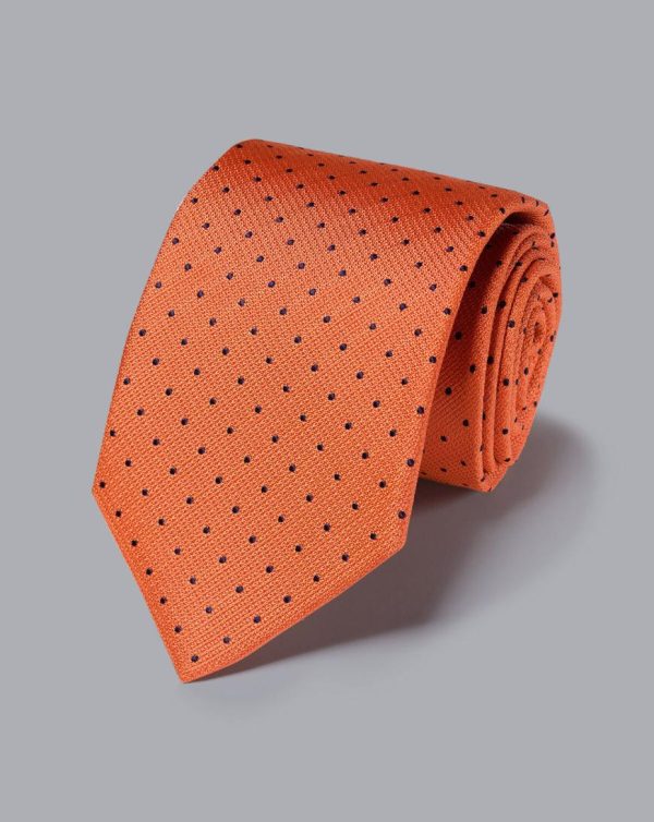 Men Stain Resistant Silk Textured Spot Tie Orange/Navy | Charles Tyrwhitt Ties