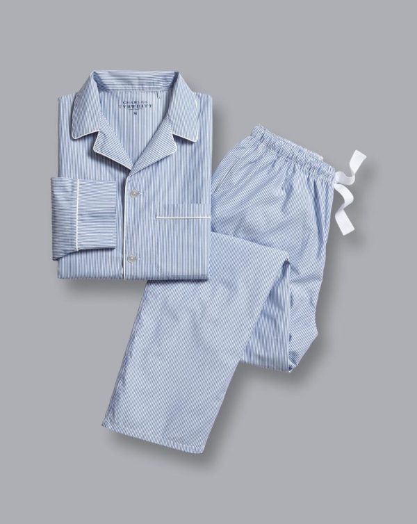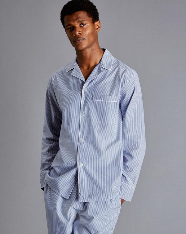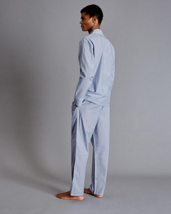 Men Stripe Pyjama Set Steel Blue/White | Charles Tyrwhitt Loungewear & Pyjamas